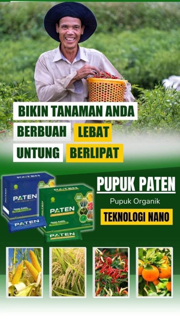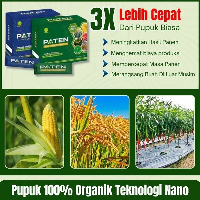 Pupuk Paten adalah pupuk organik pertama di Indonesia yang menggunakan teknologi nano, hasil penelitian para ahli pertanian selama 13 tahun. Membantu Petani Indonesia Meningkatkan Hasil Panen, Berbuah Lebat, Tanaman Subur, Tahan Hama. Sehingga Hasil Panen Berlimpah